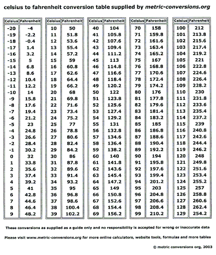 | My Life Universe And Everything Celsius To Fahrenheit Temperature Chart Chart Tool Temperature Conversion Chart |